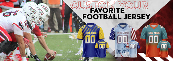 Its classic full-button design features the name and number You Custom, leaving no doubt you'll have a unique look with this jersey!Features:1. Material: 100% Polyester2. Jersey with stitched tackle twill...